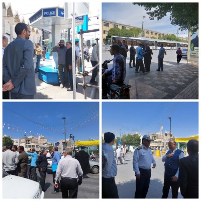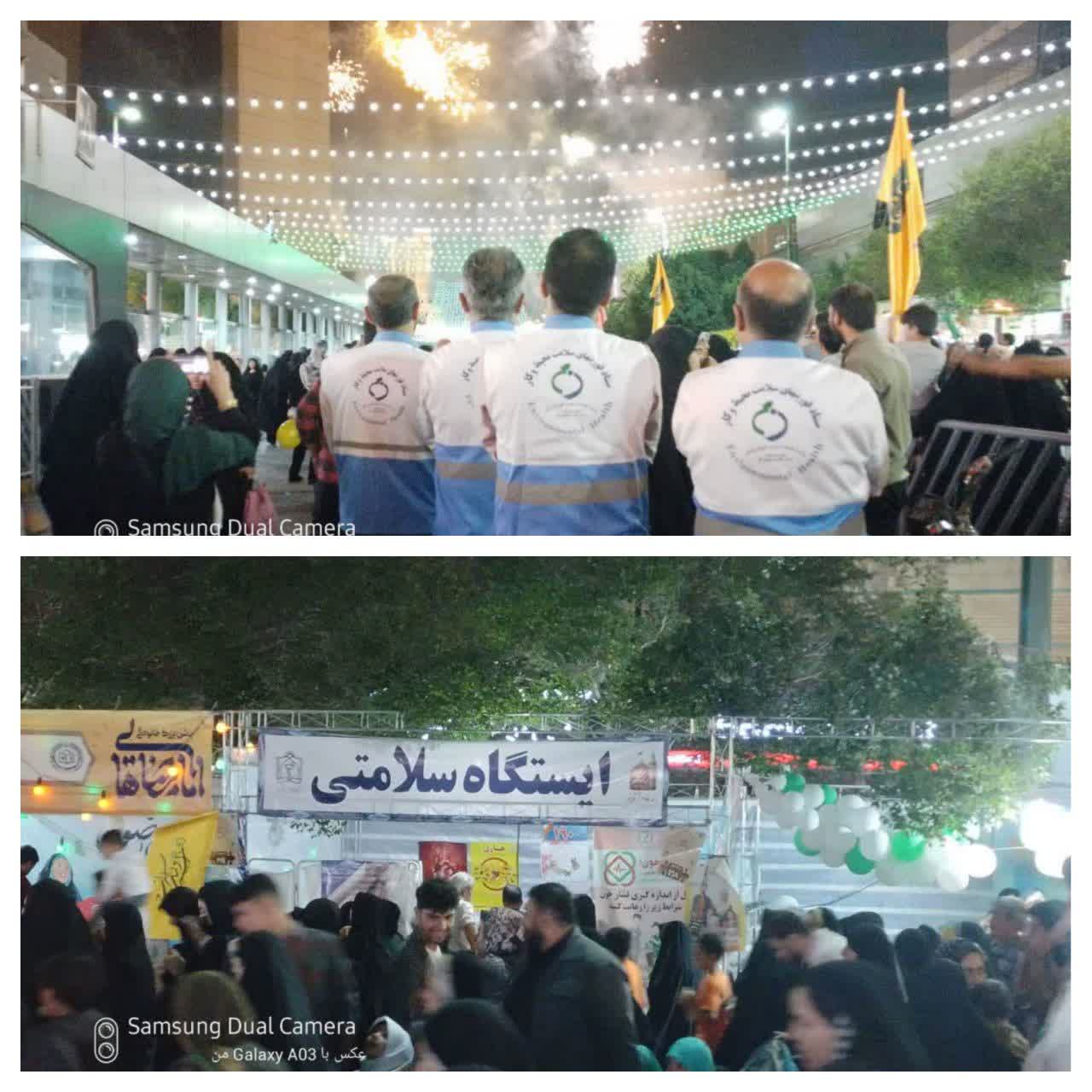 حضور ریاست محترم مرکز بهداشت ثامن و رئیس کمیته بهداشت وسلامت خدمات سفر مشهد مقدس ، معاون محترم فنی ، حراست محترم، کارشناس مسئول محترم سلامت محیط وکار و مسئولین در خیابان امام رضا( ع) جهت نظارت بر ایستگاه ها و ارائه خدمات به زائرین حضرت رضا( ع)