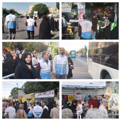 یرپایی ایستگاه سلامت مرکز بهداشت ثامن در گرامیداشت دهه کرامت و میلاد با سعادت حضرت رضا ( ع) در خیابان امام رضا و ارائه خدمات به زائرین ومجاورین آقا علی بن موسی الرضا علیه السلام
