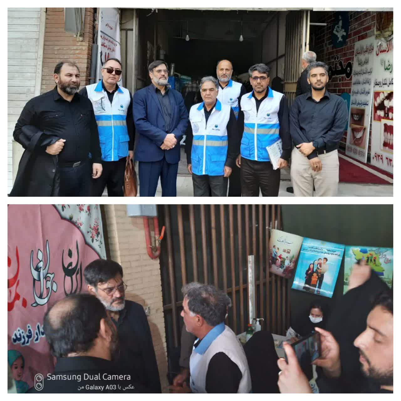 حضور ریاست محترم دانشگاه علوم پزشکی مشهد، معاون محترم بهداشت دانشگاه، مدیر محترم روابط عمومی دانشگاه علوم پزشکی مشهد، ریاست محترم مرکز بهداشت ثامن و رئیس کمیته بهداشت وسلامت خدمات سفر شهرستان مشهد در ایستگاه سلامت مهدیه( خیابان امام رضا( ع) در صبح عاشورای حسینی مورخه ۱۴۰۲/۰۵/۰۶ جهت عرض خداقوت به همکاران گرامی و نظارت بر فرایند اجرای خدمات به زائرین ومجاورین حضرت علی بن موسی الرضا علیه السلام