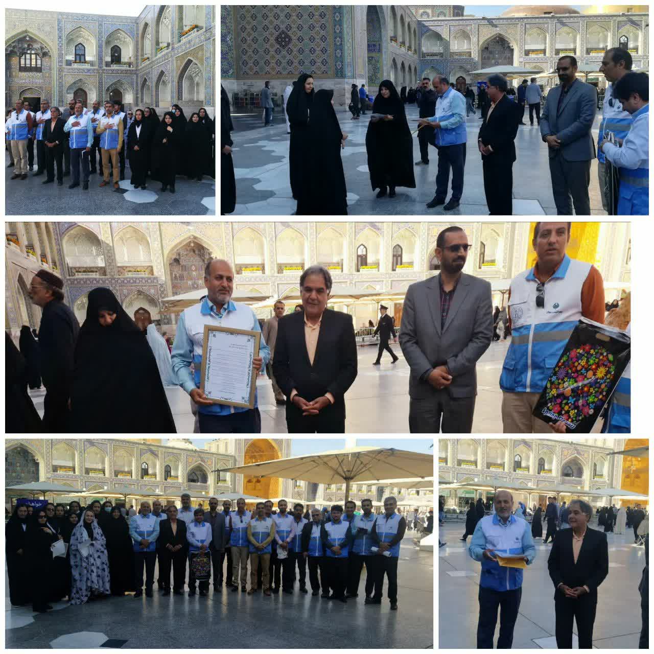 در گرامیداشت روز جهانی بهداشت محیط حضور کارشناسان محترم سلامت محیط وکار مرکز بهداشت ثامن در حرم مطهر رضوی و عرض ارادت به ساحت مقدس امام رضا(ع) با حضور ریاست محترم مرکز بهداشت ثامن جناب آقای دکتر صحی زاده و معاون محترم فنی سرکار خانم دکتر محمدی مورخه ۱۴۰۲/۰۷/۰۴ (روابط عمومی مرکز بهداشت ثامن)