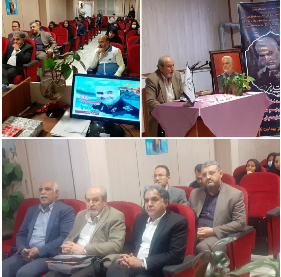 به مناسبت سالروز شهادت سردار سلیمانی ، برگزاری مراسم با حضور ریاست محترم مرکز بهداشت ثامن جناب آقای دکتر صحی زاده، جناب آقای دکتر فتاحی هیات علمی محترم دانشگاه و همکاران ارجمند مورخه ۱۳ دیماه در ستاد مرکز بهداشت ثامن ( روابط عمومی مرکز بهداشت ثامن)