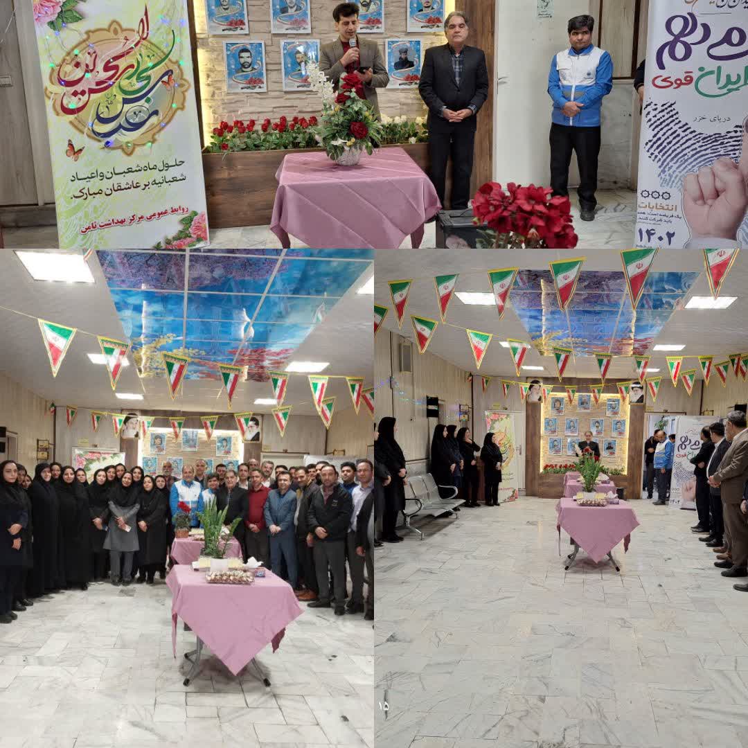 به مناسبت فرا رسیدن اعیاد شعبانیه که ولادت امام حسین (ع)، میلاد حضرت ابوالفضل (ع)، تولد امام زمان (عج)، میلاد امام سجاد (ع) و ولادت حضرت علی اکبر (ع) در این ماه قرار گرفته است برگزاری جشن و سرور با حضور رئیس محترم جناب آقای دکتر صحی زاده و همکاران مرکز بهداشت ثامن برگزار گردید