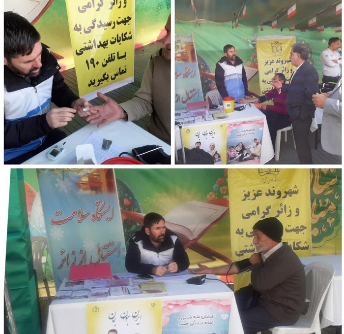 استقرار ایستگاه سلامت و استقبال از زائر مرکز بهداشت ثامن در اداره کل راه آهن خراسان جهت پاسخگوئی ، خدمت رسانی و غربالگری فشار خون و دیابت در ایستگاه سلامت به زائرین ومجاورین حضرت علی بن موسی الرضا علیه السلام مورخه ۲۵ اسفندماه