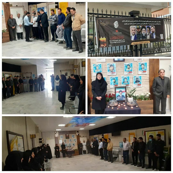 برگزاری مراسم سوگواری شهید آیت الله دکتر سید ابراهیم رئیسی و هیات همراه با حضور ریاست محترم جناب آقای دکتر صحی زاده و پرسنل گرامی در ستاد مرکز بهداشت ثامن مورخه ۱۴۰۳/۰۳/۰۱