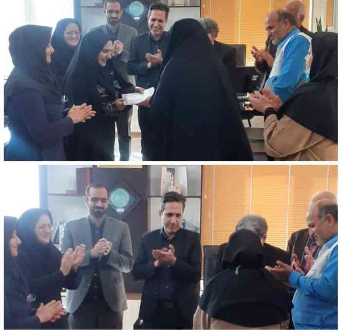 از همکار گرامی سرکار خانم الیاس پور کارشناس سلامت مادران به پاس زحمات و ارائه مشاوره به مادران باردار در سامانه ۴۰۳۰ کشوری که موفق به کسب رتبه ۶ در بین دانشگاه های کشور شده اند .