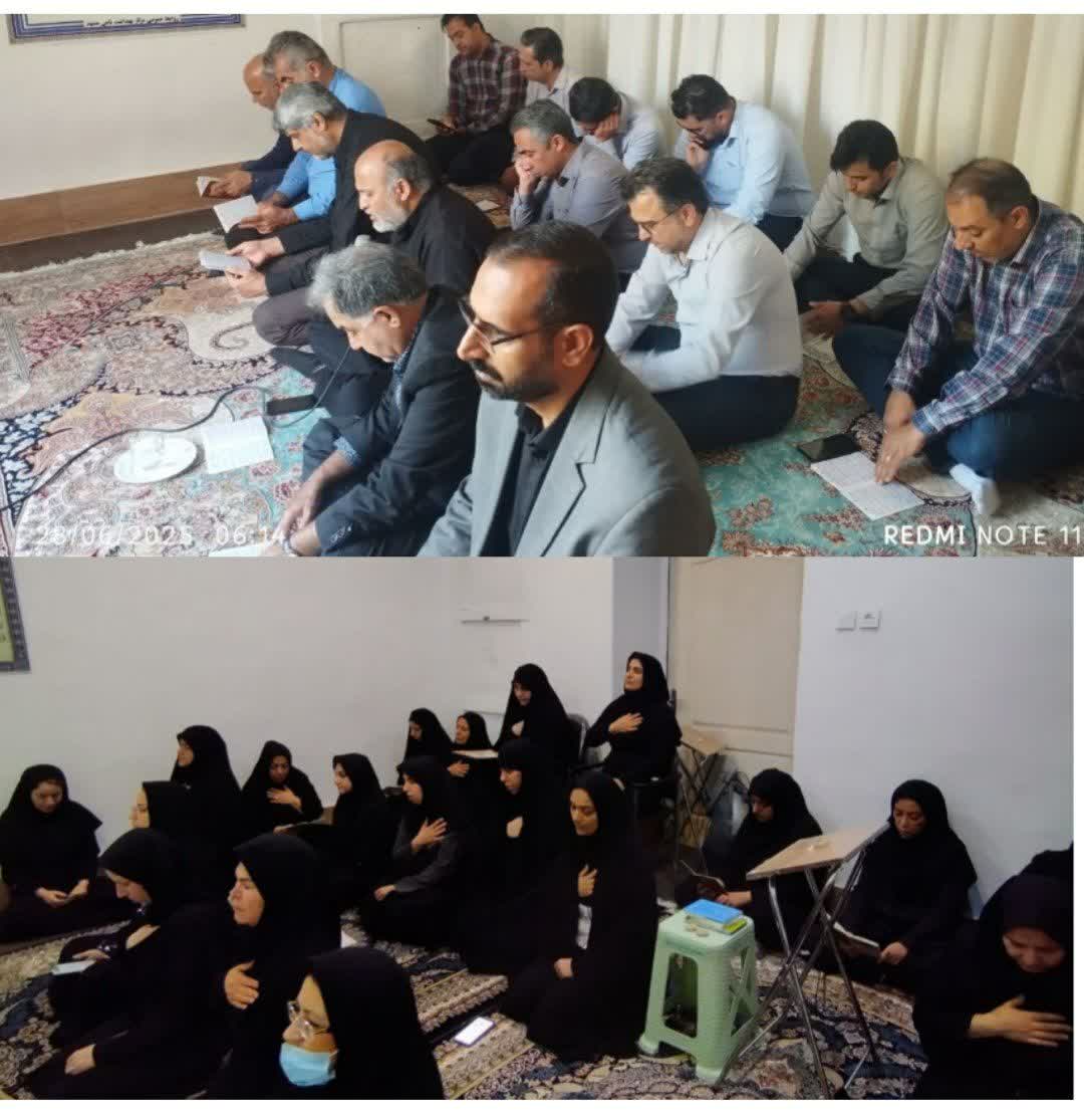 همزمان بادومین روز از ماه محرم و ایام سوگواری سرور و سالار شهیدان امام حسین(ع) و یاران باوفای آن حضرت، مراسم پرفیض قرائت زیارت عاشورا با حضور ریاست محترم مرکز بهداشت ثامن جناب آقای دکتر صحی زاده و همکاران گرامی در محل نمازخانه ستاد روابط عمومی مرکز بهداشت ثامن