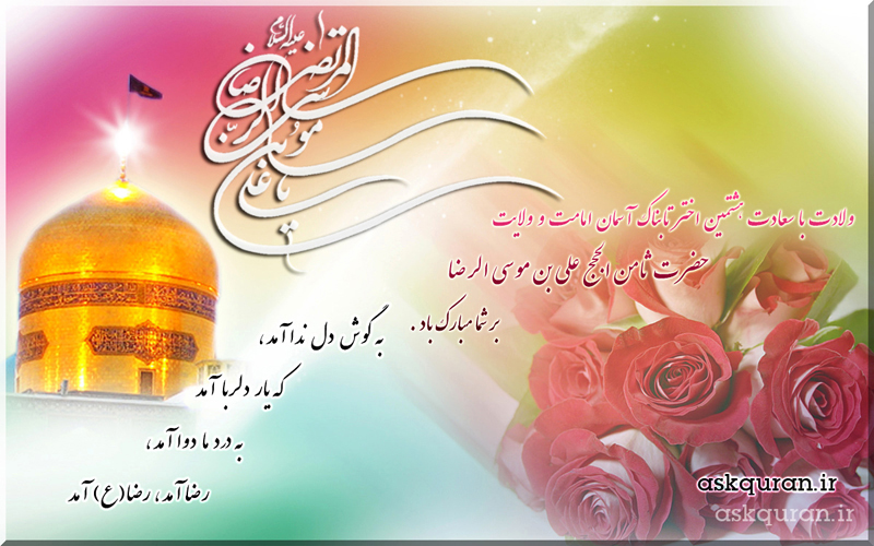 فرارسيدن يازدهم ذى القعده سالروز ولادت هشتمين امام معصوم، خورشيد فروزان خراسان، مايه بركت و افتخار كشور ايران، محبوب دلهاى شيعيان، حضرت ابى الحسن على بن موسى الرضا عليه السلام را به همه مسلمانان جهان بالأخصّ شيعيان تبريك عرض می نماییم.
