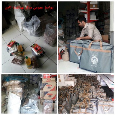 دریافت و بسته بندی 2هزار کیلوگرم جیره خشک غذایی در قالب سبد غذایی از آستان قدس رضوی جهت توزیع در بین گروههای