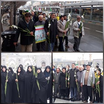 به مناسبت میلاد حضرت زهرا(س) و گرامیداشت هفته ملی سلامت مردان و هفته بزرگداشت مقام زن ، جمعی از مردان و زنان محله خرمشهر با در دست داشتن شاخه گل از میدان بسیج تا حرم مطهر رضوی پیاده روی انجام داده و سپس به سمت مرقد مطهر رفته و مراسم گلباران را در روز عید انجام دادند .