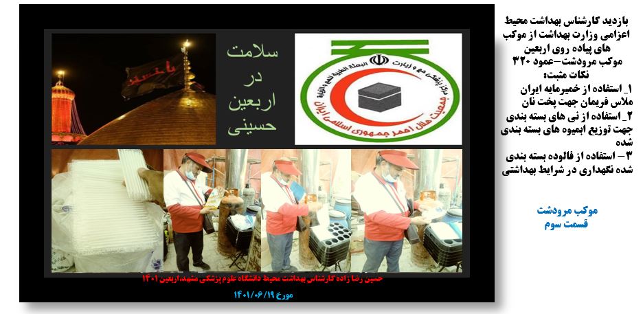 بازدید کارشناس مسئول سلامت محیط وکار مرکز بهداشت ثامن " اعزامی وزارت بهداشت" از موکب های پیاده روی اربعین حسینی